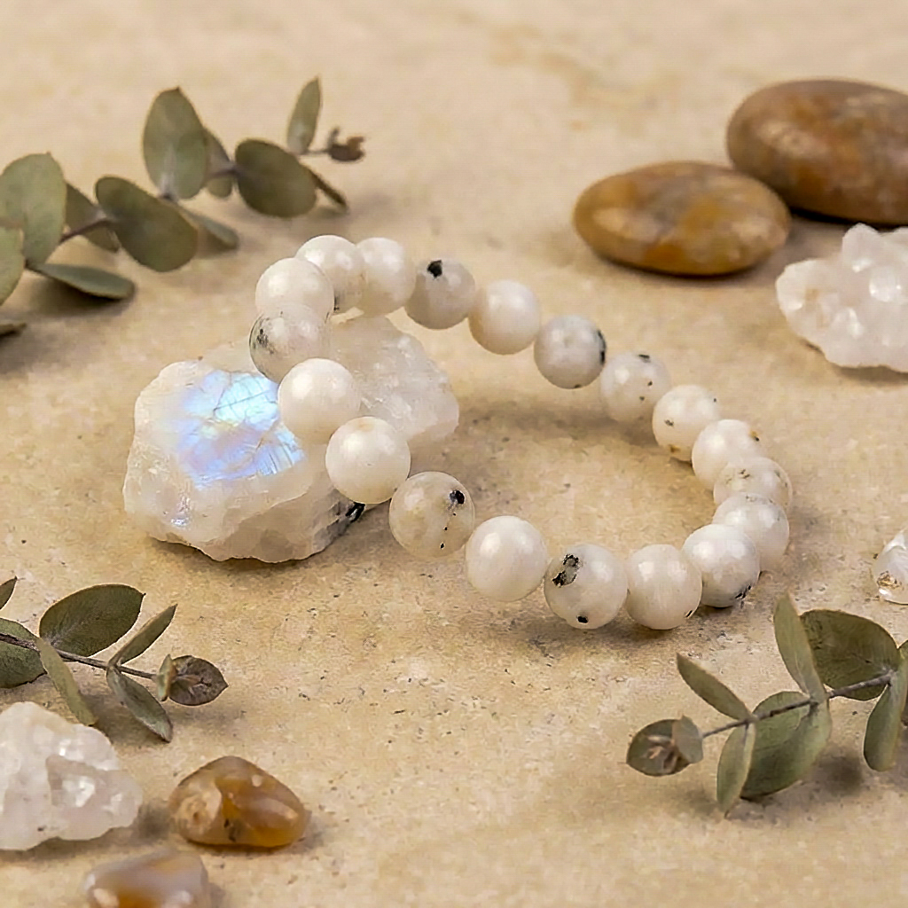 Moonstone, feldspat mineral grubuna ait, ışık altında mavi veya beyaz yansımalar gösteren özel bir doğal taştır. Dişil enerji, sezgi ve duygusal denge taşı olarak bilinir. Işığa göre değişen parlaklığı (adularesans etkisi) ile dikkat çeker.
